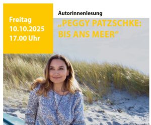 Am Freitag, 10. Oktober 2025, findet von 17:00 — 18.00 Uhr eine offene Autorenlesung der Bestseller-Autorin und Moderatorin Peggy Patzschke statt, die aus ihrem im Februar 2025 erschienenen Roman „Bis ans Meer“ liest. Im Anschluss haben die Besucherinnen und Besucher die Möglichkeit, ihr Buchexemplar signieren zu lassen.