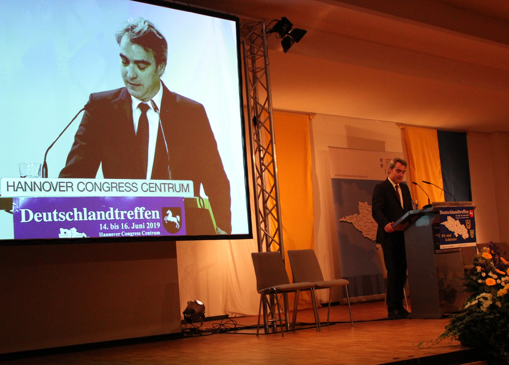 Unter dem Mot­to “Wir sind Schle­si­en” fand vom 14. bis 16. Juni 2019 das Deutsch­land­tref­fen der Schle­si­er 2019 in Han­no­ver statt. Bei der poli­ti­schen Haupt­kund­ge­bung sprach Boris Pis­to­ri­us, Nie­der­säch­si­scher Minis­ter für Inne­res und Sport, der im Anschluss mit dem Schle­si­er­schild aus­ge­zeich­net wurde.